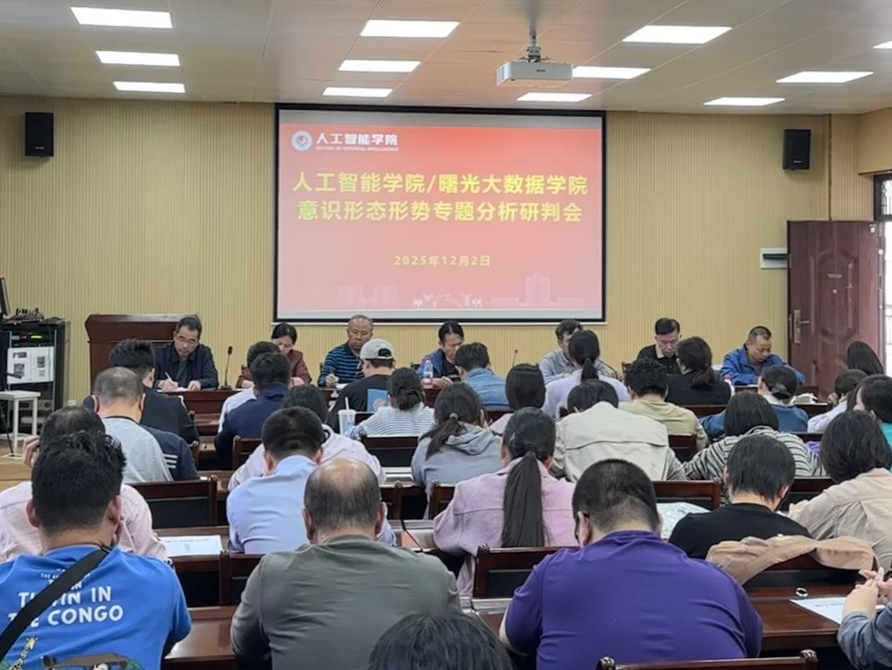 12月2日,人工智能学院/曙光大数据学院在地信楼A301会议室召开全体教职工会议,同期举行意识形态形势专题分析研判会。学院领导班子及全体教职工参加会议,会议由学院党委副书记(主持党委工作)黄江涛主持。