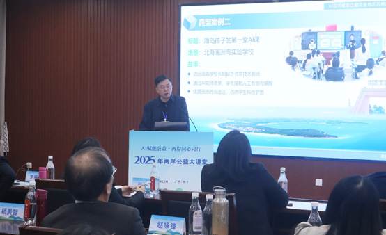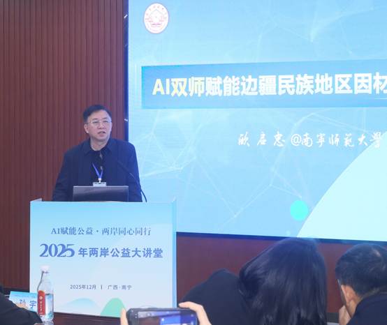 2025年12月9日,以“AI赋能公益,两岸同心同行”为主题的2025年两岸公益大讲堂在南宁举行。本次活动由中国宋庆龄基金会与台湾张老师基金会共同主办,中国宋庆龄基金会培训交流中心与广西壮族自治区人民政府台湾事务办公室联合承办。南宁师范大学代表在会上向两岸公益与教育界同仁,系统介绍了利用人工智能技术助力教育公平的探索与实践。