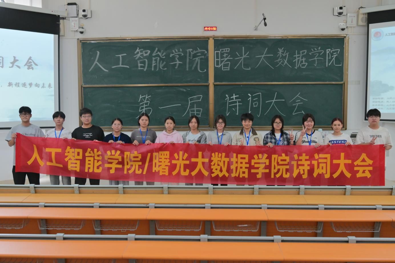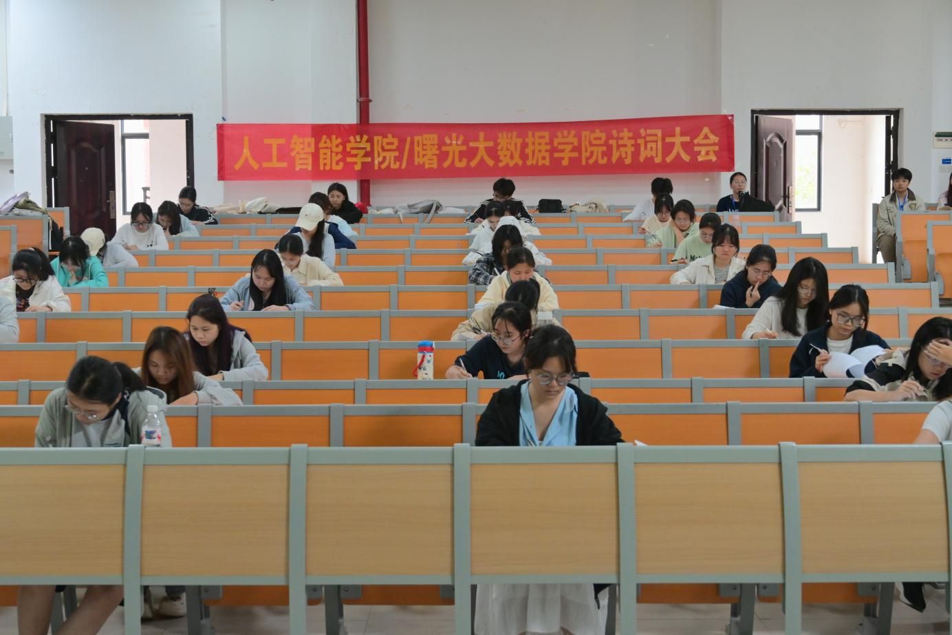 为弘扬中华优秀传统文化,丰富校园文化生活,同时选拔优秀选手参加校级诗词大会复赛,人工智能学院于10月21日在武鸣二号教学楼209教室举办以“诗词承脉颂华夏,新程逐梦向未来”为主题的第一届诗词大会初赛,共有78位选手参加。