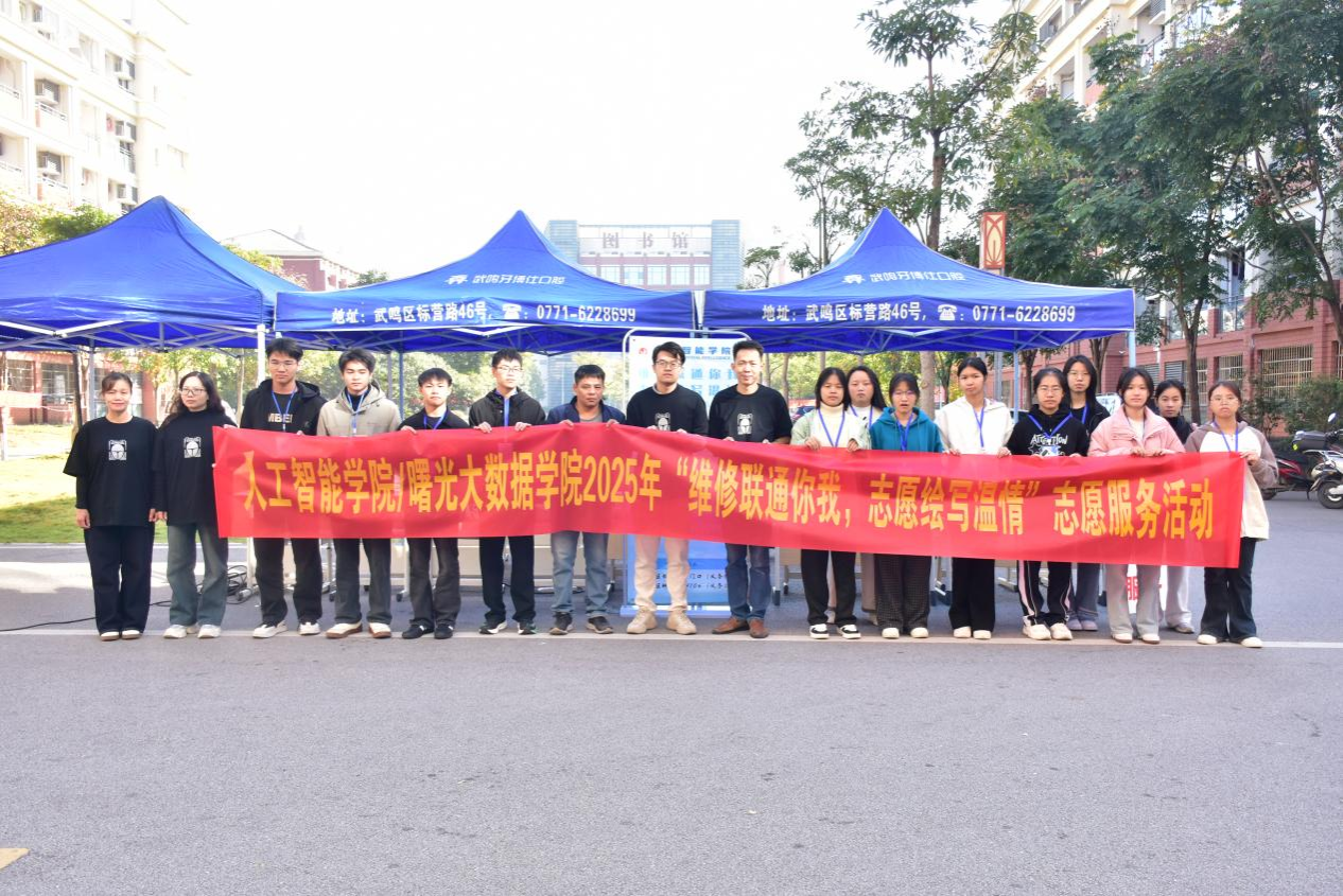 11月29日,人工智能学院联合雷神科技&武鸣铭旺电脑有限责任公司在武鸣校区松园食堂门口开展“维修联通你我,志愿绘写温情”志愿服务活动,为师生提供电脑义务维修服务。
