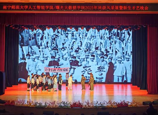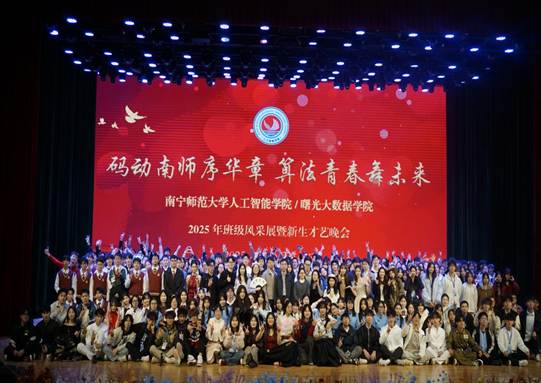 12月14日,人工智能学院/曙光大数据学院在武鸣校区千人演播厅举办“码动南师序华章,算法青春舞未来”2025年班级风采展暨新生才艺晚会。学院党委副书记(主持党委工作)黄江涛、党委副书记韦柳温、曙光锐翼合作中心项目经理姚媛老师、大数据系系主任梁烽老师、班主任代表、学院辅导员、各学院学生代表、全体新生等600余人现场观看了演出,晚会同步进行线上直播。